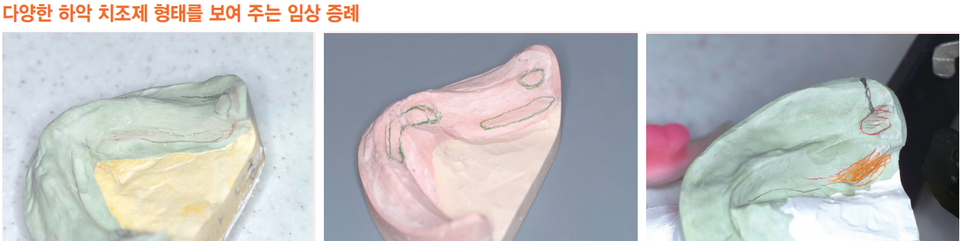 치료틀니는 교합조정을 하고 tissue conditioner를 이용해서 유지력을 증가시키는 내면조정과 border molding을 실시합니다.