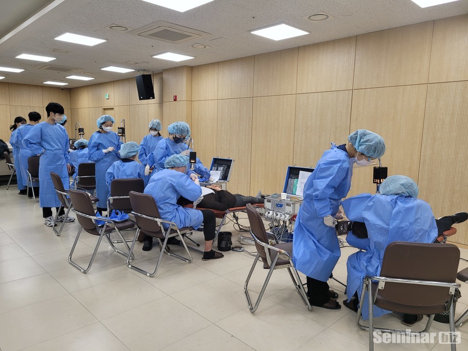 경희대학교 치과병원(원장 황의환)은 경희기독치과학생봉사단 CDSA와 함께 명절을 앞두고 지난 12일부터 3일 간 충북 천안시 입장면 입장농협 대강당에서 치과 진료봉사를 진행했다. CDSA회원 70명을 비롯해 박준봉 명예교수, CDSA 지도교수인 경희대 치과병원 김성훈 교수(바이오급속교정센터장), CDSA 출신 손유탁 · 성기원 · 임현우 치과의사가 함께 참여했다.