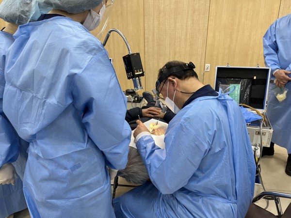 진료봉사 기간 동안 입장농협에서 마련해준 대강당에서 어르신 90여 명을 대상으로 스케일링, 발치, 보존치료 등의 치과치료를 수행했다. 일회성 진료에 그치지 않고 구강건강을 유지하고 관리할 수 있도록 구강병 예방과 칫솔질, 틀니관리에 대한 교육도 함께 진행했다.