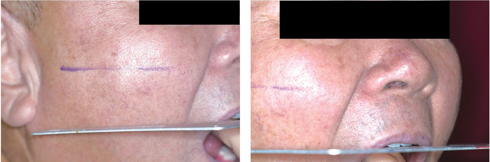Base plate wax 1장을 연화하여 상악 구치부를 덮고 환자에게 평소대로 저작하게 한다.