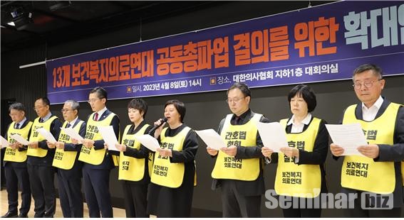 대한치과의사협회(회장 박태근 이하 치협)를 비롯한 13개 단체가 참여한 ‘보건복지의료연대’는 지난 8일 오후 2시부터 의협 회관에서 열고 투쟁의 중지를 모았다.