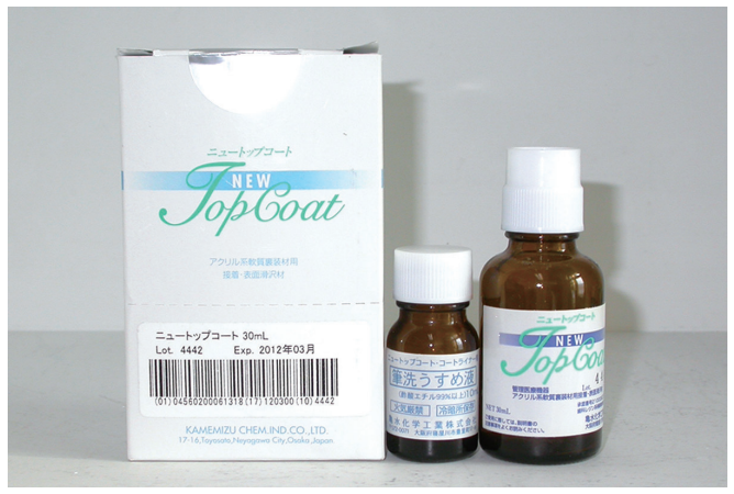 틀니 내면에 top coat를 두세 번 도포하고 말린 후 입안에서 3분 정도 물고 있게 하였다.