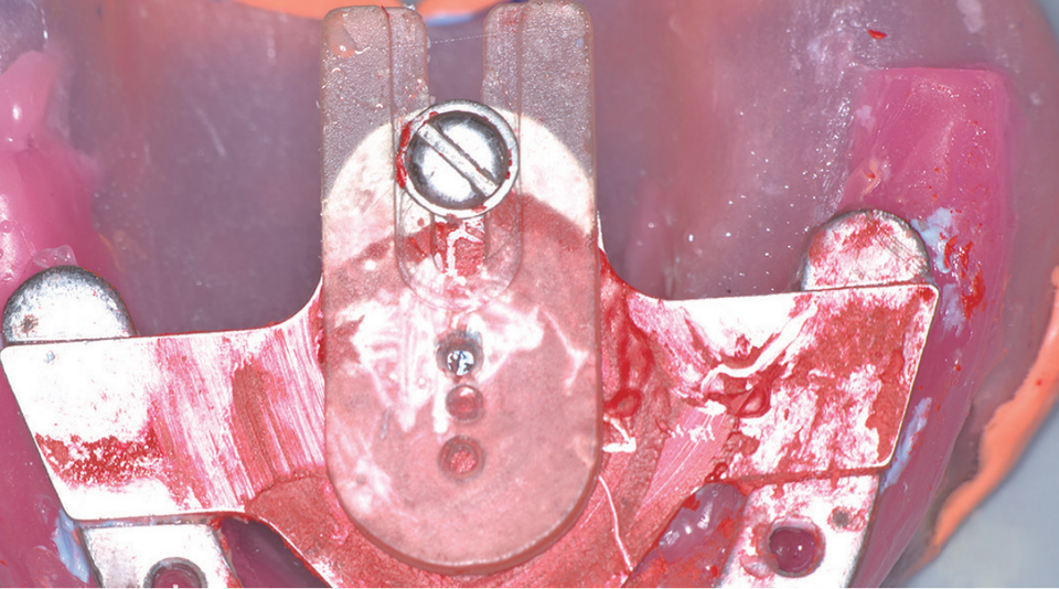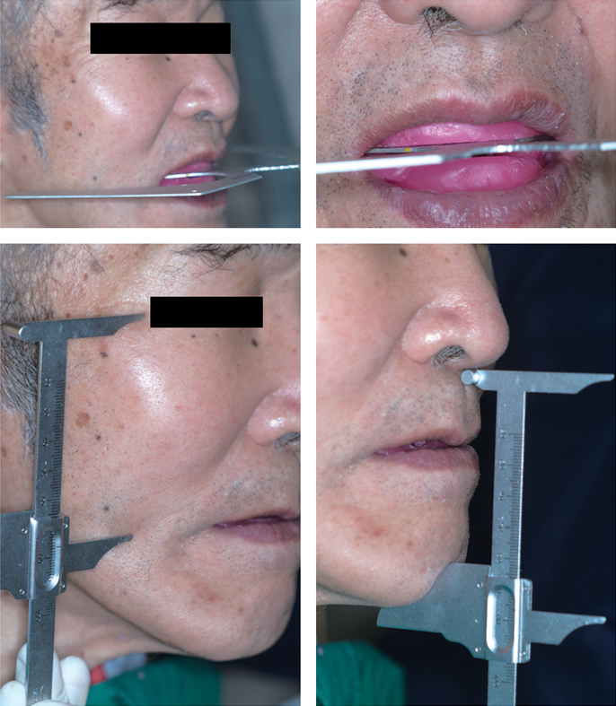 Willis’ gauge를 이용하여 대략적인 VD를 찾는다. VD가 결정되면 Gnathometer M을 부착할 공간을 4mm 정도 삭제한다.