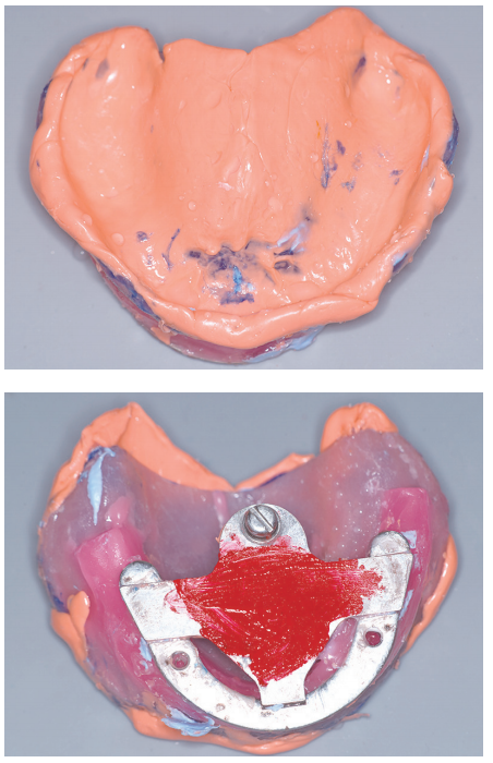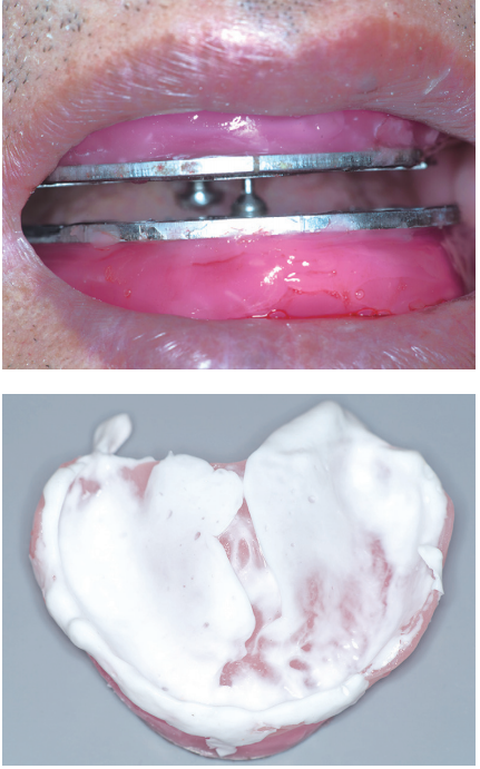 Gnathometer M이 부착된 tray를 이용해서 상악부터 실리콘 인상재를 이용하여 기능인상을 채득하였다.