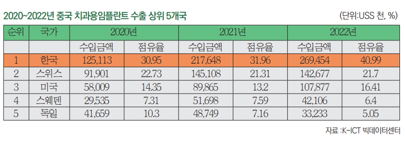 # 중국 치과병원 임플란트 시장 규모 132억 2700만 위안 추정