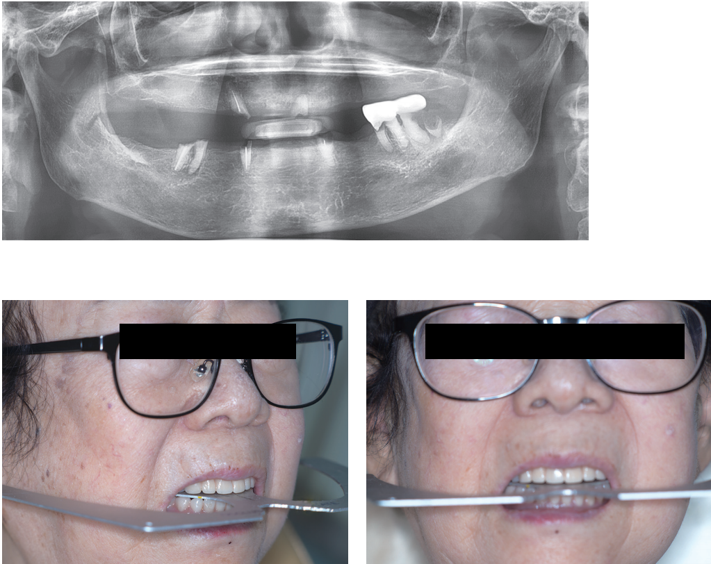 3일 후에 교합조정을 받으려 내원하였다. 아직 틀니를 끼고 식사하려면 구토 증상이 일어나서 불안하다고 하였다.