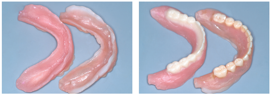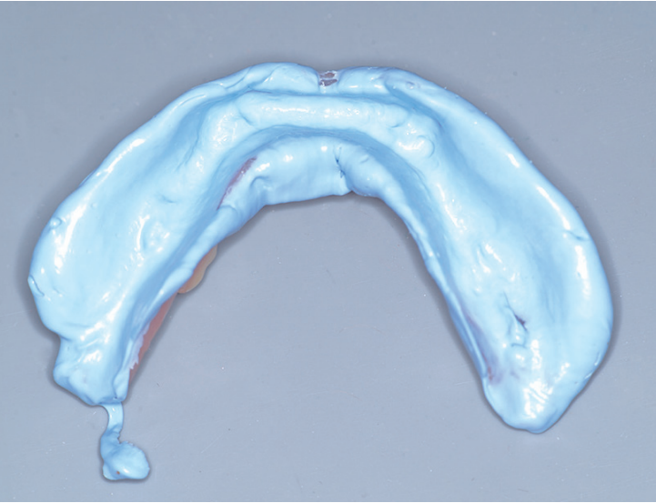 하악은 러버 인상재를 이용하여 active functional impression을 실시하였다.