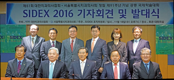 SIDEX 2016은 대한치과의사협회(회장최남섭, 이하 치협)와 서울시치과의사회(회장 권태호, 이하 서울지부)가 공동 주최로 내년 4월 15~17일 코엑스에서 열린다. 치협과 서울지부는 지난달 18일 치과의사회관에서 ‘SIDEX 2016 기자회견 및 발대식’을 갖고, 성공적인 SIDEX 2016을 위한 본격적인 공동 행보를 알렸다.