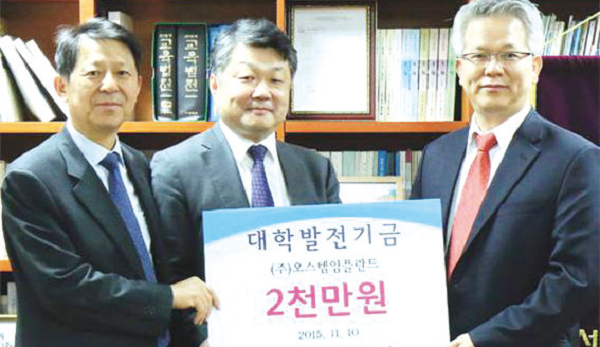 서울대 치의학대학원(원장 이재일·이하 치의학대학원)은 오스템임플란트(대표최규옥)가 대학발전기금 2000만원을 치의학대학원에 기부했다고 최근 밝혔다.