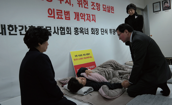 간무협 홍옥녀 회장은 의료법개정안이 복지위를 통과한 지난 3일(목)부터 단식 투쟁에 들어갔다.