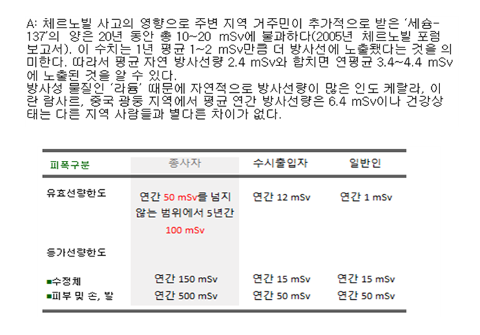 앞에서 고선량과 저선량에 따른 확정적, 확률적 영향에 대해 알아보았다. 그러면 고선량과 저선량, 고선량률과 저선량률의 경계는 어디일까? 선량에 대해서는 ICRP 1990년 권고 및 UNSCEAR 2000년 권고에서 200mGy 이하를 저선량, 선량률에 대해서는 ICRP 1990년 권고가 0.05mGy/분=3mGy/시간 이하, UNSCEAR 2000년 권고에서는 0.06mGy/분=3.6mGy/시간 이하를 저선량률로 정의하고 있다.