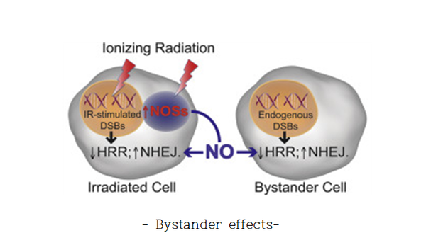 1) 방관자효과[Bystander effects(저선량 방사선에 의한 non-targeted delayed effects)]