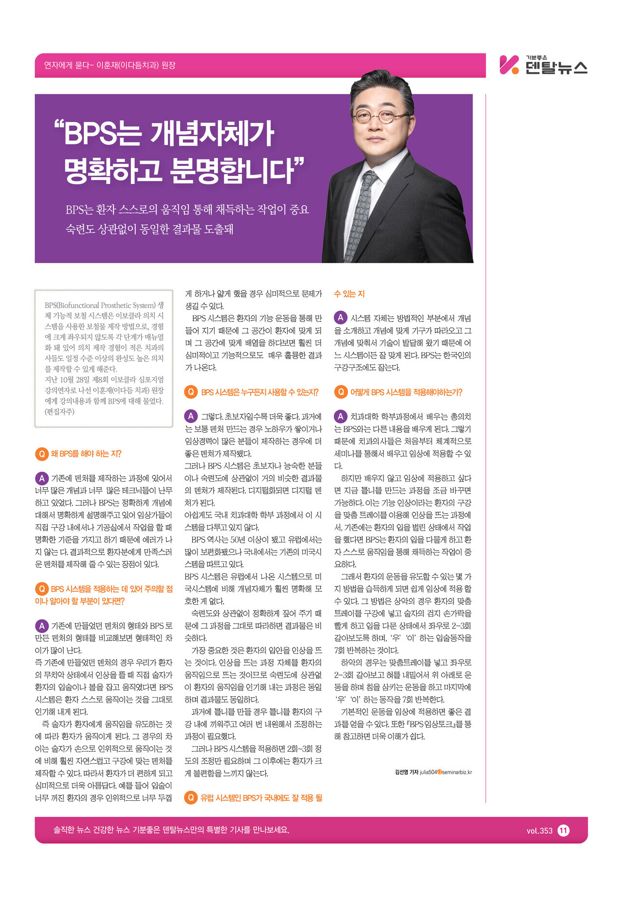시스템 자체는 방법적인 부분에서 개념을 소개하고 개념에 맞게 기구가 따라오고 그 개념에 맞춰서 기술이 발달해 왔기 때문에 어느 시스템이든 잘 맞게 된다. BPS는 한국인의 구강구조에도 잘 맞게 된다.