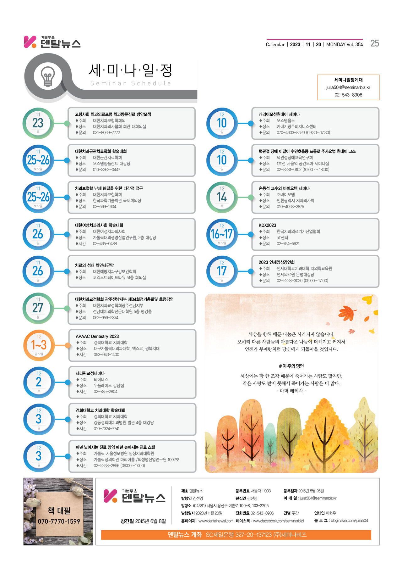 좋아요0훈훈해요0슬퍼요0후속기사 원해요0 키워드 #덴탈뉴스 #대한치과보철학회 #오스템미팅 #연세임상강연회 #대한치과교정학회 #치과뉴스 덴탈뉴스 webmaster@seminarbiz.kr 다른기사 보기 저작권자 © 덴탈뉴스 무단전재 및 재배포 금지 당신만 안 본 뉴스 [알파베러정재욱대표] 좋은 제품 검증된 제품만 모은 알파베러 유한 evertis 임플란트 성공 위한 워크샵 진행 “미용치과 안티에이징이 치과의 블루오션” 덴탈스튜디오, 블랙니들홀더 출시 서울대학교치과병원, 키르기스스탄 장애 어린이위한 사랑의 의료봉사 펼쳐 연송캠퍼스 개관10주년 기념식 및 SID 명예의 전당 제막식 네오바이오텍, 즉시로딩 임플란트 ALX-IT 11월 세미나 전국 진행 [알파베러정재욱대표] 좋은 제품 검증된 제품만 모은 알파베러 개의 댓글 회원로그인 작성자 비밀번호 댓글 내용입력 댓글 정렬 최신순 추천순 답글순 BEST댓글 BEST 댓글 답글과 추천수를 합산하여 자동으로 노출됩니다. 닫기 더보기 댓글삭제 삭제한 댓글은 다시 복구할 수 없습니다. 그래도 삭제하시겠습니까? 비밀번호 닫기 댓글수정 댓글 수정은 작성 후 1분내에만 가능합니다. 본문 / 400 비밀번호 닫기 내 댓글 모음 닫기 주요기사 중국 의료기기 1등급 인허가 취득 점빵치과 고민! 한자리서 해결 완성도높은 투명교정 솔루션 나노라이너 치과의사들의 만성고민 해결 신경치료가 혈당과 지방대사까지 개선 골이식 전략과 덴티움 제품 활용 노하우 공유