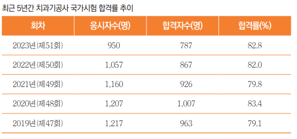 제51회 치과기공사 국가시험은 전체 950명의 응시자 중 787명이 합격해 82.8%의 합격률을 보였다.