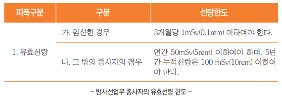 만약 임신한 치과의료 종사자라도 피폭선량이 3개월간 1mSv 이하로만 유지된다면 방사선 관련 업무에 계속 종사할 수도 있다.