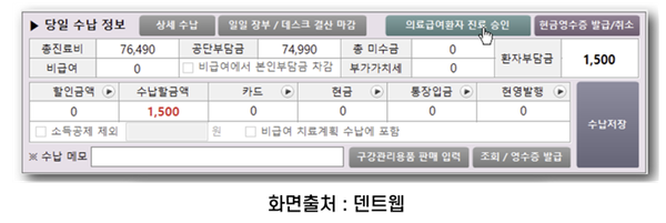 하지만, 의료급여 수급권자여도 본인부담금을 수납하는 경우가 있다. 예를 들면, 1종 환자의 경우는 ‘건강생활 유지비’ 잔액이 0원 일 경우이다. 진료비 승인은 하되, 환자에게 직접 본인부담금을 받으면 된다. 다른 예로는 2종 환자의 경우는 따로 ‘건강생활 유지비’가 없기 때문에 매번 수납 시 승인은 하되, 본인부담금은 직접 수납할 수 있게 해야 한다. 진료실에 있다 갑자기 데스크로 업무 배정이 된 선생님들이 가장 헷갈려 하는 부분이다. 이 부분을 명확히 알아야 정확한 수납을 할 수 있고, 미수금이 생기지 않게 된다.