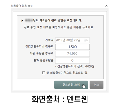 왜냐하면, 의료급여 1종 환자는 국가에서 매월 가상 계좌로 ‘건강생활 유지비’ 항목으로 6천 원씩 지급된다. 그래서 진료가 완료되면 환자에게 직접 현금으로 받는 것이 아닌 ‘건강생활 유지비’에서 승인 작업을 통해 차감을 해야 한다. 그리고 환자에게는 본인부담금을 받지 않아도 된다.