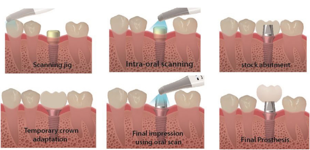 Digital Scanning에 의한 임플란트 보철수복의 일반적인 술식은 그림 11-2와 같다.