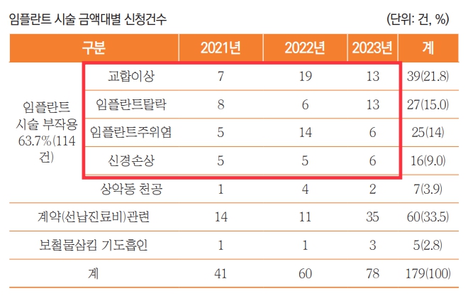 금액 낮을수록 분쟁 높아 ...부작용은 교합이상과 임플란트 탈락순