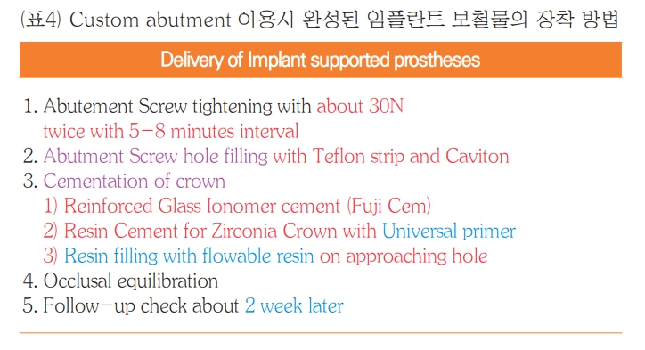 2) Custom abutments 이용한 임플란트 보철물의 장착 순서