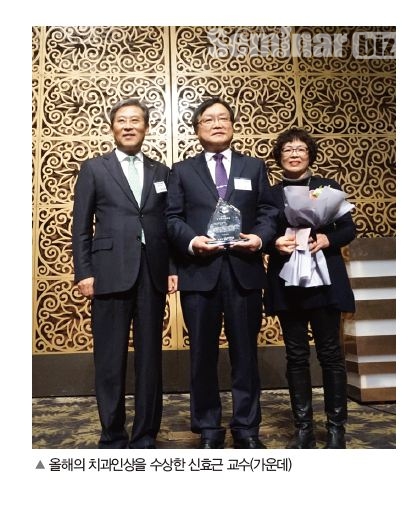 올해의 치과인상에는 신효근(전북대 치 전원 구강악안면외과학교실) 교수가 선정 됐다. 신교수는 “좋아서 한 일이며 더 훌륭한 분들이 많은데 받게 되어 부끄럽고 영광스럽다”고 소감을 밝혔다. 신교수는 또 “1995년 은사인 민병일 교수님을 모시고 베트남 봉사를 시작한 지 올해로 21년, 50번 이상을 베트남을 방문 했다. 함께 해 준 대한구강악안면외과학회, 대한악안면성형재건외과학회 교수님들과 전공의, 학생들 모두에게 주는 상이 라고 생각한다”며 “정년을 앞두고 받게 되어 기쁘고 계속 봉사하겠다”고 소감을 밝혔다.