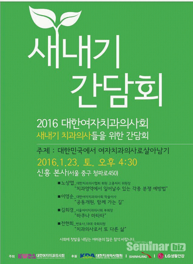오는 23일(토)오후 4시30분부터 신흥본사에서 여자치과의사들을 대상으로 새내기 간담회가 개최된다. 대한여자치과의사회(회장 이지나)가 매년 개최하는 이번 새내기 간담회는 ‘대한민국에서 여자치과의사로 살아남기’를 주제로 진행된다.