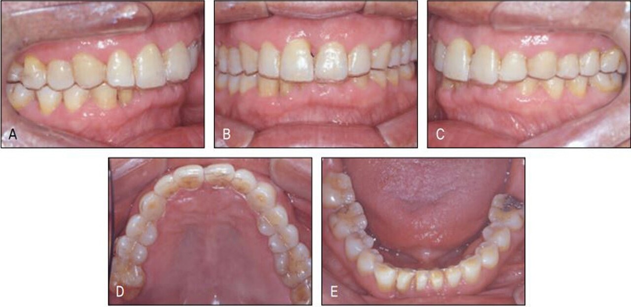 지난 일년 전 하악우측 측절치의 치주 및 근관 치료 중 갑작스럽게 치아가 전위되면서 원심부에 공간이 발생한 환자로, 보철을 위해서는 공간재분배가 불가피하여 교정 치료를 위해 의뢰된 환자였다. 하전치부는 교모와 함께 정출이 나타나 이론적으로는 intrusion 후 보철이 필요하지만 환자는 공간재분배라는 간단한 교정치료 조차 받기를 주저할 정도이어서 치료계획에 넣지도 않았다. 하악의 공간외에 상악정중부에도 치주질환으로 인한 공간이 있어 치료시 하악 상악같이 할 것을 권유하였으나 환자는 보철을 위해 꼭 필요한 하악에서의 교정만 하는 것으로 하고 상악 치료는 거부하였다. 후에 알게 된 사실이지만 환자가 상악교정을 거부한 이유는 장치의 노출 때문이었다. 교정 장치가 보기 싫어서가 아니라 “나이 들어서 교정치료를 받는 것이 민망해서”라고 하였다.