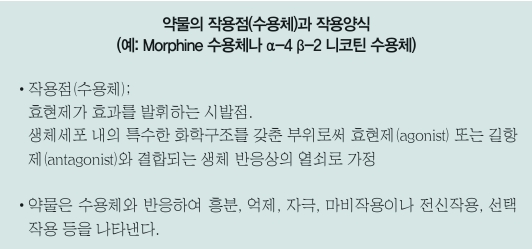 약물들은 대부분 세포막에 위치한 수용체와 반응하여 특이적으로 효과를 나타낸다. 약물이 특정 수용체에 선택적으로 작용할수록 그 치료효과가 높고 상대적으로 부작용이 적어지게 되므로 선택성이 높은 약물이 좋은약이 되는 것이다.