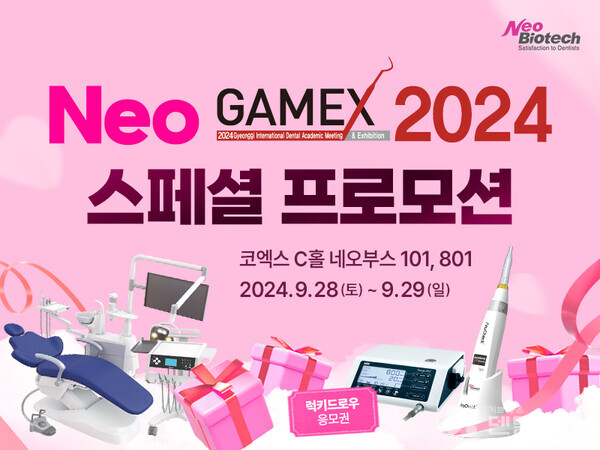 ㈜네오바이오텍(대표 허영구, 이하 네오)은 9월 28일(토) ~ 29일(일) 서울 코엑스에서 진행되는 경기국제종합학술대회 및 치과기자재전시회 ‘GAMEX 2024’에 참여해 특별 프로모션과 다양한 이벤트를 진행한다.