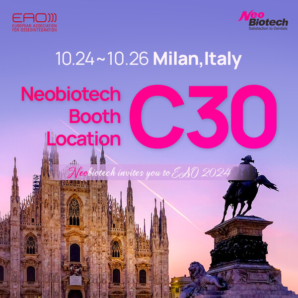 [덴탈뉴스=홍혜진 기자] ㈜네오바이오텍(대표 허영구, 이하 네오)이 10월 24일(목) ~ 26일(토) 이탈리아 밀라노에서 열리는 유럽 최대 규모 임플란트 학회 ‘EAO 2024’에 참가한다.