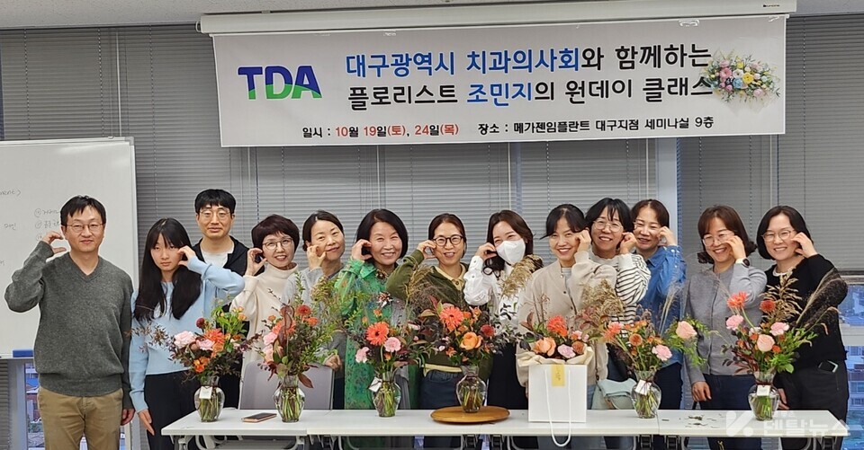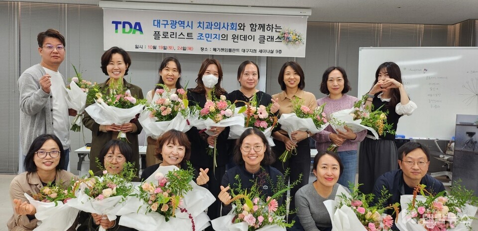 [덴탈뉴스=김선영 기자] 대구광역시 치과의사회(회장; 박세호, 이하 대구지부)에서는 회원 눈높이에 맞는 공약 사업의 일환으로 지난 10월 19일과 24일 2회에 걸쳐 플로리스트 조민지의 원데이 클래스를 메가젠 임플란트 대구지점 세미나실에서 개최했다.