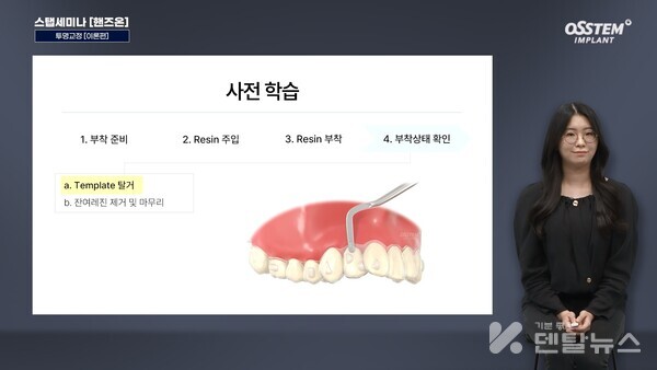 [덴탈뉴스=홍혜진 기자] 오스템임플란트가 운영하는 치과 종합포털 덴올의 교육 프로그램 스탭세미나가 '투명 교정' 온라인 강의가 이달 13일과 27일 두 차례 진행한다.