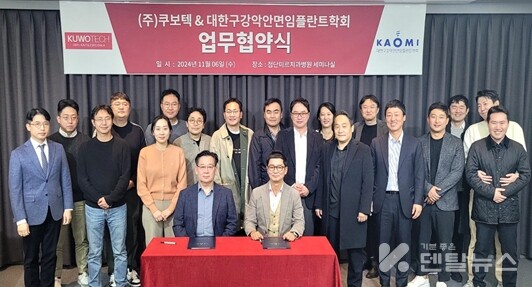 [덴탈뉴스=홍혜진 기자] 대한구강악안면임플란트학회 (회장 황재홍, 이하 KAOMI)가 지난 11월 6일 첨단미르치과병원에서 ㈜쿠보텍과 업무협약식을 체결했다.