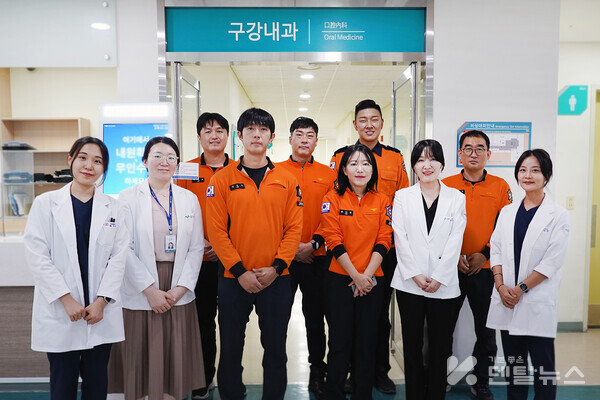[덴탈뉴스=홍혜진 기자] 부산대학교 치과병원(병원장 김현철)은 대한안면통증구강내과학회에서 시행하는 ‘턱관절의 날’(11월 9일)을 기념하여 10월 30일(수) 경남소방본부 소속 소방관들을 대상으로 무료 턱관절 치료를 지원했다.