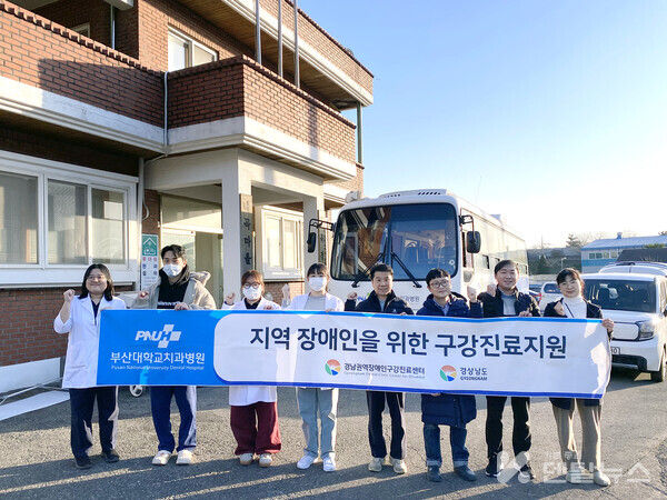 [덴탈뉴스=홍혜진 기자] 부산대학교치과병원(병원장 김현철)이 위탁·운영하는 경남권역장애인구강진료센터(센터장 손성애)는 지난 12월 19일(목), 중증장애인거주시설 하늘정원에서 ‘장애인구강진료센터 의료봉사’를 실시했다. <사진>