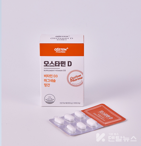 오스타민D는 비타민D3를 통해 골의 형성과 유지에 필수적인 칼슘과 인의 흡수에 도움을 주는 성분으로 구성돼 있다. 임플란트 수술 후 잇몸 치조골 건강 역시 골의 범주에 포함돼 비타민D3가 중추적인 역할을 담당한다.
