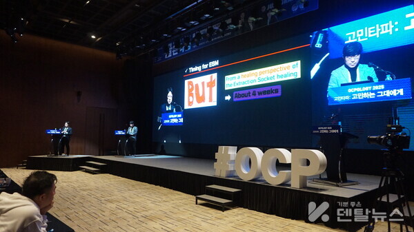 이어 민경만(메이치과) 원장과 창동욱(윈치과) 원장이 공동으로 ‘초기 후기 실패에 대한 대처방안으로써의 OCP활용법’을 기사회생을 주제로 강의했다.