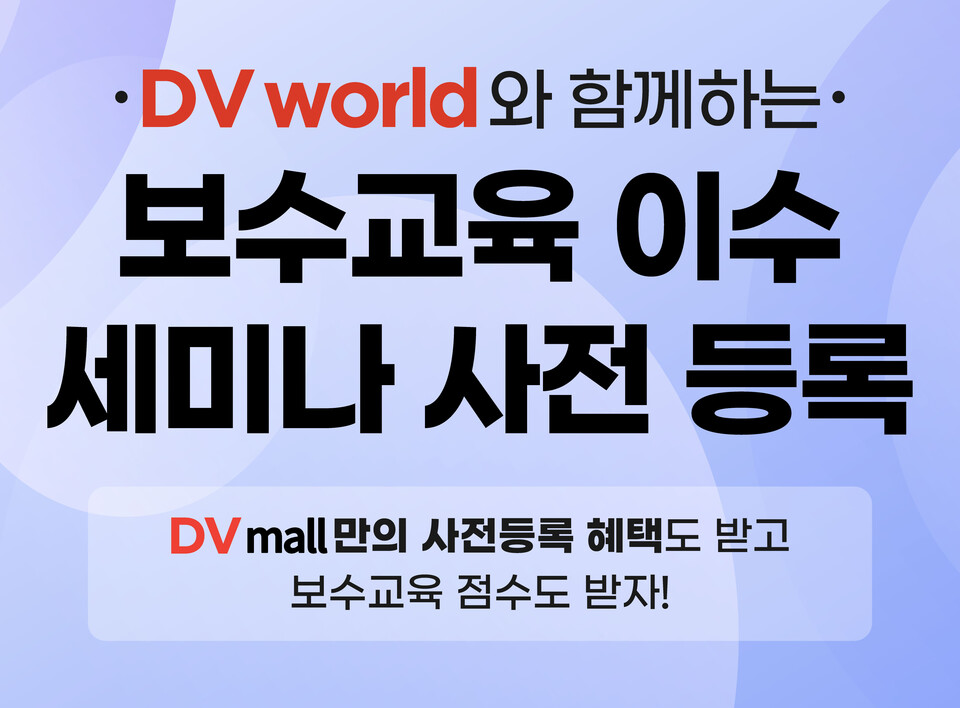 날이 풀리면서 최근 학술대회 개최가 활발한 시기라 DVmall에서 등록하는 학술대회만 참석해도 보수교육 점수를 채울 수 있다. 무엇보다 사전등록시 개최 측의 학술대회 사전 등록 혜택을 받음과 동시에 추가로 DV Point 10,000P를 받을 수 있어 이득이다. 멤버십 회원의 경우 20,000P가 제공된다.