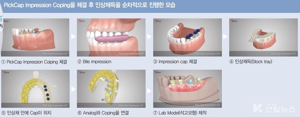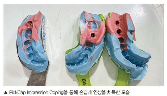 또한 PickCap Impression Coping은 인상 채득 과정에서 기존 방식과 다르게 높은 숙련도가 필요없으며 손쉽게 사용할 수 있다. 특히 Open Tray 방식을 사용할 필요 없이 기존 픽업 방식의 정확성과 트랜스퍼 방식의 편의성을 더해 더욱 간편하고 정확하게 인상을 채득할 수 있다. 아울러 멸균 처리가 가능해 위생적으로 장기간 사용이 가능하다는 점도 큰 장점이다. 치과에서는 감염관리가 필수적인 만큼, 위생적 요소는 제품 선택의 중요한 기준이 된다. PickCap Impres sion Coping은 이러한 임상적 요구를 충족하며 기대 이상의 만족 도를 제공하는 제품으로 만족하며 사용하고 있다.