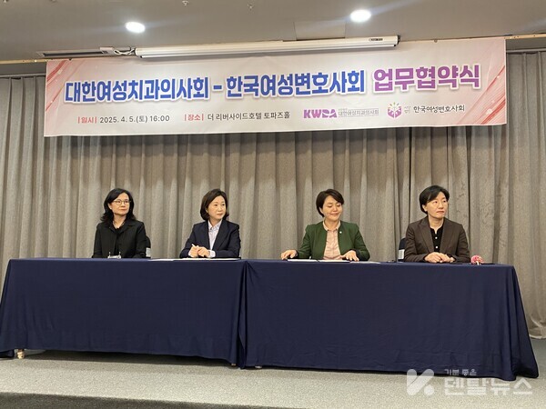 [덴탈뉴스=김선영 기자] 대한여성치과의사회(회장 장소희, 이하 대여치)는 지난 5일 더리버사이드호텔 토파즈홀에서 한국여성변호사회와 업무협약식을 맺었다.