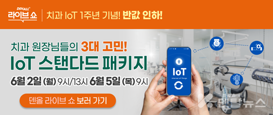 덴올라이브쇼는 2일(월)과 5일(목) IoT(사물인터넷) 스탠다드 패키지 인하 방송을 진행한다고 밝혔다. IoT 서비스를 통해 치과 원장님들의 고민을 획기적으로 개선할 수 있어 많은 주문이 몰릴 것으로 기대된다.