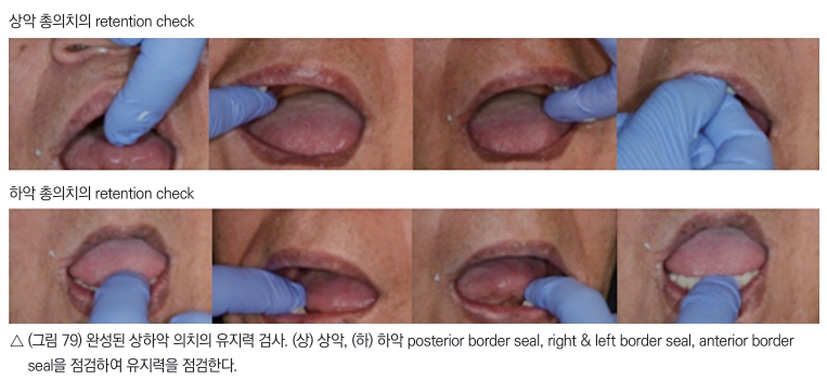 (1) 상악의치의 유지력 검사(그림 79 상)
