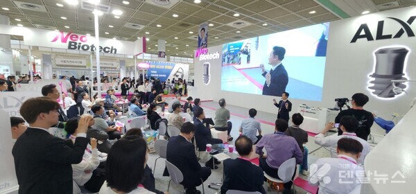 그리고 행사 마지막 날인 6/1(일) 네오 부스에서 진행된 허영구 원장의 더미 모델을 활용한 라이브 데모에서는 ALX와 함께 무치악 환자를 위한 smile arch solution을 제시했고, ALX 식립을 직접 시연하며 발치와 케이스와 일반적인 임상케이스의 프로토콜이 다름을 비교 설명하며 ALX가 다양한 임상 상황에서 유연하게 사용될 수 있도록 설계되었음을 강조하면서 많은 참가자들의 이목을 집중 시켰다.