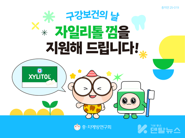 [덴탈뉴스=김선영 기자] 충·치예방연구회(공동대표 정재연·이병진 이하, 충치연)는 제80회 구강보건의 날(이하 6.9제)을 맞아 전국의 보건소와 대학 치위생(학)과, 치과대학의 6.9제 행사를 지원한다. 6.9제 행사를 위한 지원 물품은 “롯데웰푸드(주)”의 후원을 받아 충치예방에 도움이 되는 자일리톨 껌으로 구성되었다.