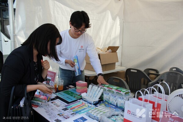 구강위생용품 설명 부스에서는 첨단칫솔, 삼면칫솔 등 다양한 구강관리 도구 사용법을 안내하며 실생활에 도움이 되는 구강건강 정보를 제공했다.