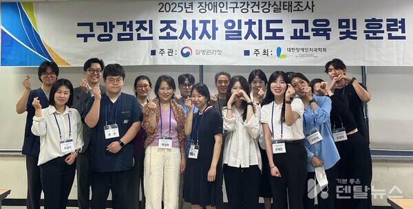[덴탈뉴스=홍혜진 기자] 대한장애인치과학회(회장: 금기연)는 2025년 장애인구강건강실태조사(연구책임자: 김영재)의 본격 시행에 앞서, 조사 참여 인력의 실무역량 강화를 위한 현장 모의검진 중심의 교육훈련을 지난 5월 28일(수) 충남 천안 소재 충남평생복지협회에서 실시했다고 밝혔다.