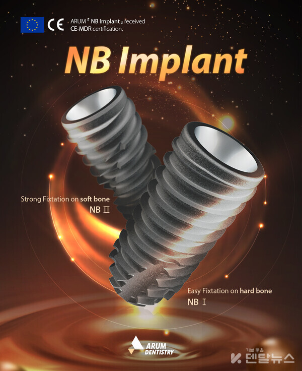 아름덴티스트리의 NB 임플란트는 2020년 출시된 임플란트로, 이와 같은 까다로운 기준을 충족해 지난 6월 MDR 최종 승인을 받아 글로벌 수준의 기술력과 품질 신뢰도를 입증했다.