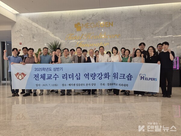 [덴탈뉴스=홍혜진 기자] 경희대학교 치과대학(학장 권용대)은 2025학년도 상반기 전체 교수 리더십 역량 강화 워크숍을 지난 7월 12일 대구 메가젠임플란트 본사에서 개최했다. 이번 워크숍은 치과대학 교수진의 리더십 역량 제고와 함께 디지털 덴티스트리 및 산학연구 협력의 발전 방향을 모색하는 데 초점을 맞췄다.