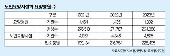 2023년 기준 요양병원은 1,392개(264,380개 병상), 2023년 노인요양시설은 4,525개(228,495개 병상)이며, 요양병원, 요양원, 주야간보호센타, 재가복지서비스 4종류로 구분된다. 노인 1천만 시대에서 요양병원및 시설돌봄의 노인들의 구강건강관리의 중요성이 점점 더 부각되고 있다. 또한 재가거동불편노인이나 요양시설에 있는 노인들의 구강건강 관리의 어려움도 현실적인 문제다.